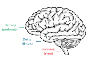 The 95% is what we absorb from parents, teachers, childcare and the culture we grow up around. This largely occurs below the age of 7. Therefore, when we are confronted with a situation, information collected by our five senses are sent to the brain stem via the spinal cord, which then sends a message to the limbic brain that searches the library of experiences, memories and events. This is why a particular scent or hearing a certain song ignites feelings of pleasure or pain. If the brain registers a certain smell as danger, it triggers an alarm that is sent to the amygdala, which sends a distress signal to the hypothalamus (are of the brain that communicates with the rest of the body). This activates the release of adrenaline from the adrenal glands and the stress hormone cortisol to prepare the body to fight, flight or freeze. These neurological and somatic responses can be best understood through Dr Stephen Prorges’ Polyvagal Theory (2017) and Dr Peter Levine’s Somatic Experiencing (Levine & Fredrick, 1997).